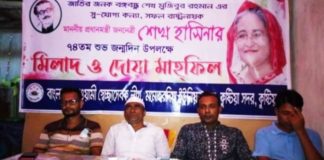 কুষ্টিয়ায় জেলা আওয়ামীলীগের আয়োজনে প্রধানমন্ত্রী শেখ হাসিনার ৭৪’তম জন্মদিন পালন
