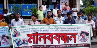 সৈয়দপুরে বিএনপি কর্মীকে সাধারণ সম্পাদক করায় স্বেচ্ছা সেবক লীগের মানববন্ধন