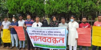 নদী পথে নিরাপদ যাত্রা নিশ্চিতের দাবিতে নবীনগরে সামাজিক সংগঠন নোঙরের মানববন্ধন