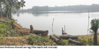 ঝিনাইদহে ঐতিহ্যবাহী ঢোল সমুদ্র দিঘির পুরাতন গাছ কেটে নেওয়ার চেষ্টা,...