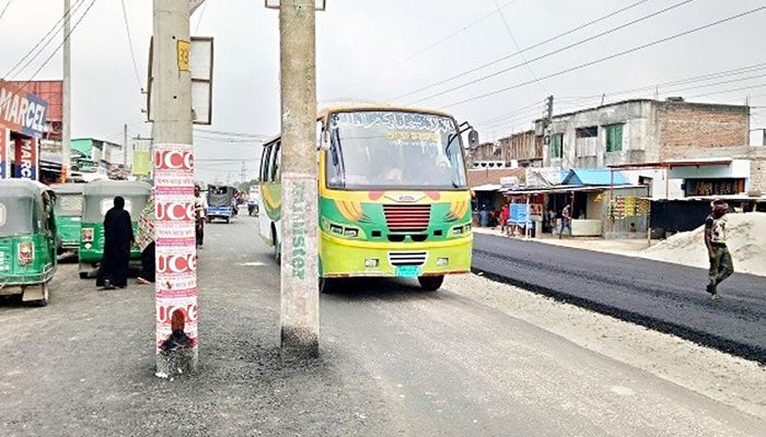 এদিকে সড়কের প্রায় ৭৫ ভাগ রাস্তার অধিকাংশ জায়গায় বিটুমিন সারফেসের কাজও সম্পন্ন হয়েছে। ব্যস্ততম এই সড়কে যানবাহনও চলছে কিন্তু বেশ কিছু জায়গায় রাস্তার মাঝখানে বৈদ্যুতিক খুঁটি এ পথে চলাচলকারী যাত্রী ও চালকদের দুশ্চিন্তার কারণ হয়ে দাঁড়িয়েছে। দুর্ঘটনার শঙ্কা নিয়ে তারা চলাচল করতে বাধ্য হচ্ছেন।