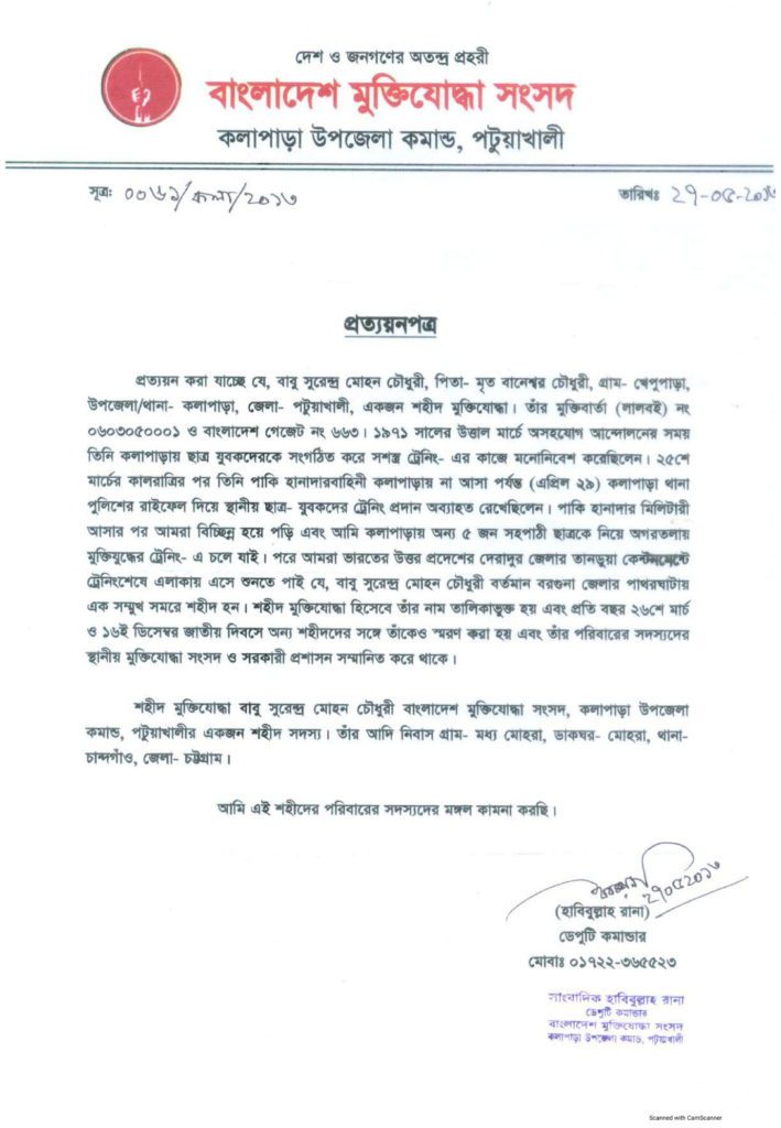 ছবিঃ কলাপাড়ার শহীদ মুক্তিযোদ্ধা সুরেন্দ্রমোহন চৌধুরি
